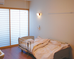 プライバシーを配慮し、各居室と居間・食堂との関係は、入居者のプライバシーに配慮しアルコープ(緩衝帯)を設けました。 ゆったりとした居室は7.5畳。なじみの家具を持ち込めます。
