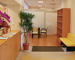 施設の玄関、各ユニットの玄関とも、PM9~AM7の夜間は施錠する予定です。日中は、原則として出入口の施錠は行いませんが、職員専用の出入口のみ電気錠により開閉します。